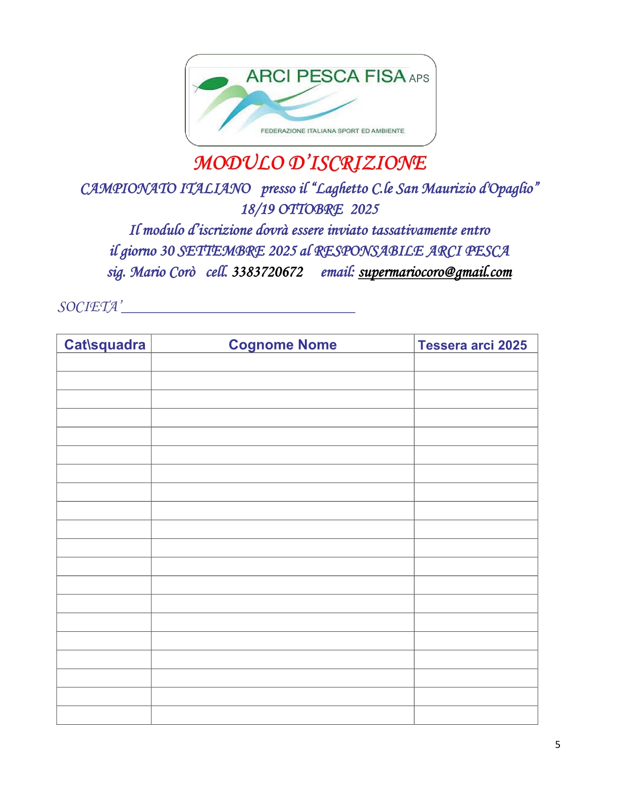 Tesserati ad Arcipesca FISA e sostieni la promozione della pesca sportiva e la tutela dell’ambiente acquatico. Unisciti a noi e vivi la tua passione con eventi, gare e iniziative dedicate!